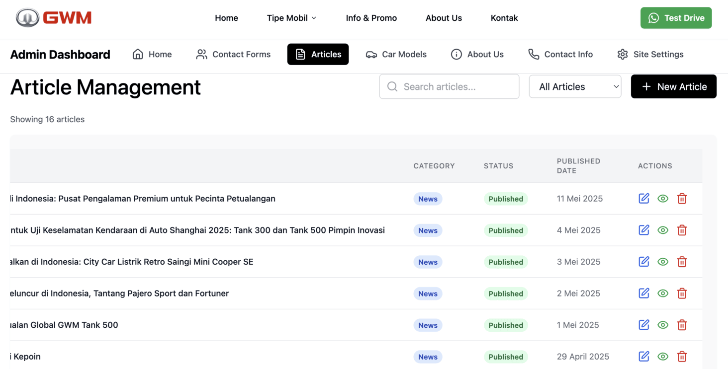 - Content Editing: Tiptap WYSIWYG editor to create/edit articles and About Us pages.